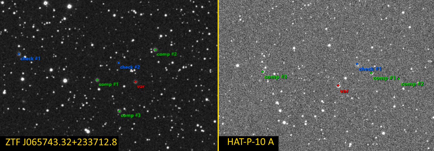 Within the frame of our observation of ZTF J065743.32+233712.8 we also found an interesting object at equatorial coordinates 06h 57m 20.74s +23° 32′ 14.0″, which appears to be a binary star system of two stars eclipsing each other periodically with a period of only (0.300 ± 0.025) days and an amplitude of (0.26 ± 0.03) magnitudes. This may suggest the stars are very close to each other, almost in contact.