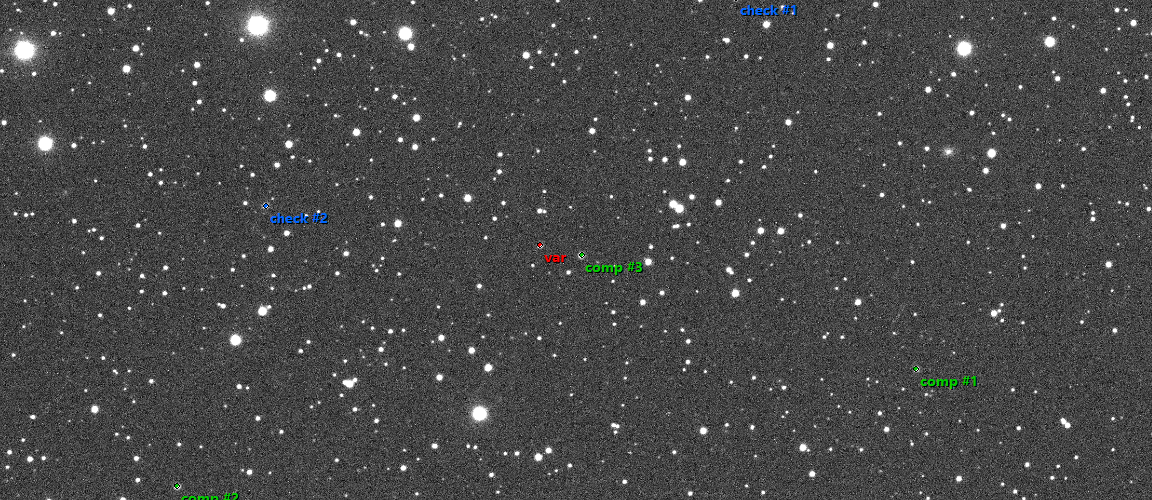 Here, one can see the measured light curve, it can be seen that these changes in brightness cannot be described by just one frequency, but rather two ore more frequencies corresponding to different pulsation cycles. Multiple types of oscillation seem to coexist in this case. We tried to use a Fourier-model to determine the frequencies, the resulting funtction is also shown in figure 2. While the graph seems to fit the data quite well, the calculated frequencies did not represent the visible oscillations. The model gives a much lower primary frequency while the visible oscillations are represented by higher orders in the fourier expansion. We extracted the two most dominant frequencies directly from the graph instead. For a variable star as complex as this one, other mathematical models might give better results.