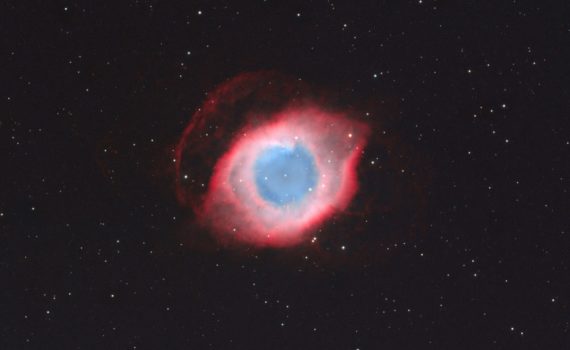 The Helix Nebula, NGC7293, is one of the largest and brightest planetary nebulae in the sky – only 650 light years from earth in the constellation Aquarius. For the expansion velocity one ca estimate that the Helix Nebula was born 10000 years ago. It was formed by a low-mass star, […]